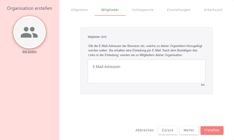 Im Reiter „Mitglieder“ können Personen in deine Organisation eingeladen werden.