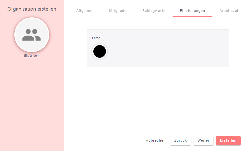 Im Reiter "Einstellungen" kannst du die Farbe deiner Organisation einstellen.